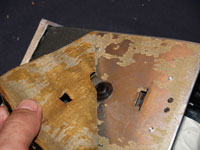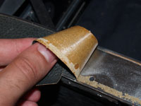 Peel the leather off the front door, don't worry about any glue left, you can scrape it off with a razorblade. If you don't have any other original leather pieces to use as templates, BE CAREFUL when peeling. A tear or stretch can make cutting new leather difficult.