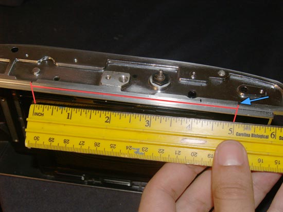From the left edge of the film plane, measure out the distance to the end of the film back. In this case it is 5 inches.