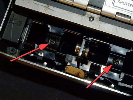 There are still some odd contacts and wires left. Its quite obvious which leads to the timer, but the shutter is another matter. Look inside and notice 2 wires coming from the front of the camera. These are the ones you must connect to. All other wires, regardless of their connection, should be removed.