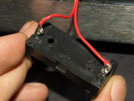 Strip the 2 wires for both the shutter and timer. I found using an xacto knife and shaving the covering to be best, the wires are flimsy. Using a soldering iron, tin the tips with some solder and flux. Do the same to the 2 terminals of the battery holders.